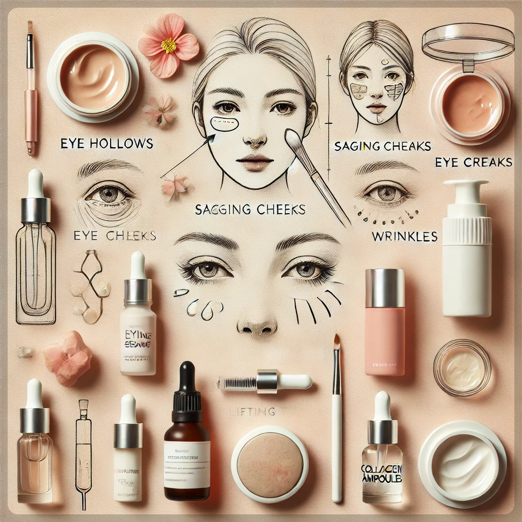 - 카페인 + 펩타이드 + 레티놀이 함유된 제품이 눈가 탄력 회복에 효과적입니다.